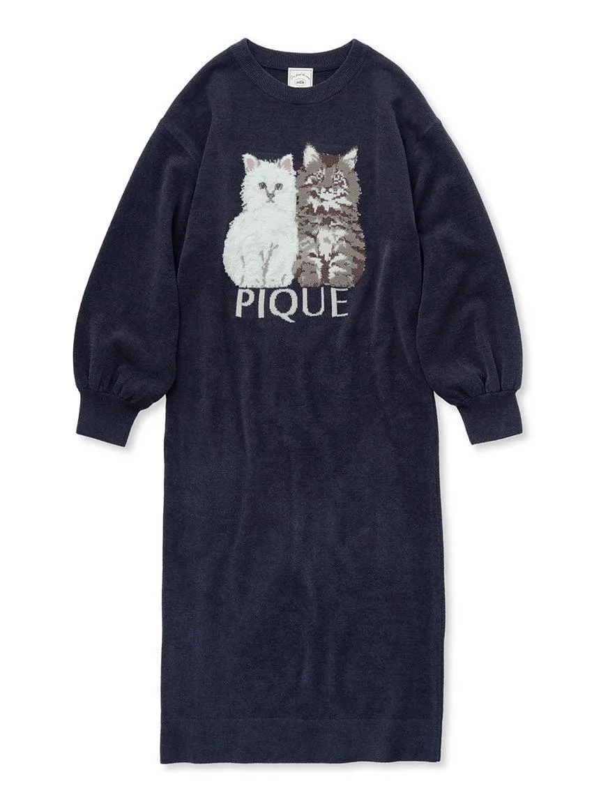 Airy Moco Twin Cats Jacquard Dress | Gelato Pique Official | Gelato Pique