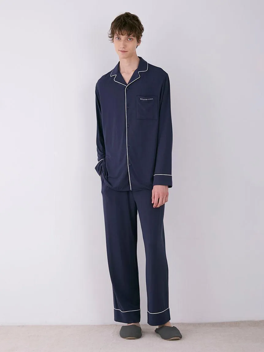Slip into the ultimate in nighttime comfort with the Rayon Long-Sleeve Sleep Shirt with Piping. Crafted from smooth, lightweight rayon fabric, this sleep shirt offers a luxurious drape that feels cool against the skin, perfect for a restful night’s sleep. The long sleeves provide coverage while remaining breathable, making it ideal for year-round wear. The classic button-up design is complemented by contrasting piping along the collar, cuffs, and pocket, adding a timeless elegance to your loungewear collection. A chest pocket is conveniently positioned for small essentials, featuring the Gelato Pique logo for a signature touch. The relaxed fit ensures ease of movement, while the soft fabric delivers maximum comfort. Whether you're winding down after a long day or lounging on the weekend, this sleep shirt combines sophistication with practical comfort for a seamless transition from night to day.