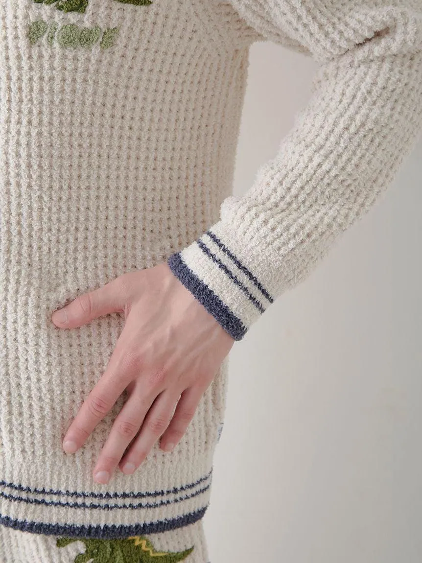 [Fluffy Waffle Fabric Dinosaur Hoodie]