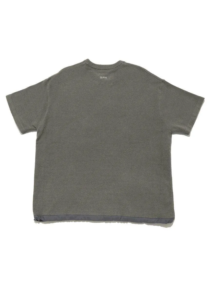 The rich, textured fabric in subdued earth tones such as deep navy and muted green adds a touch of elegance to this casual piece. Its straightforward, pullover design includes a round neckline and short sleeves that contribute to its laid-back appeal. The hem of the top features a unique adjustable drawstring, allowing you to customize the fit to suit your comfort level. Lightweight yet cozy, this top is perfect for lounging at home or casual outings.