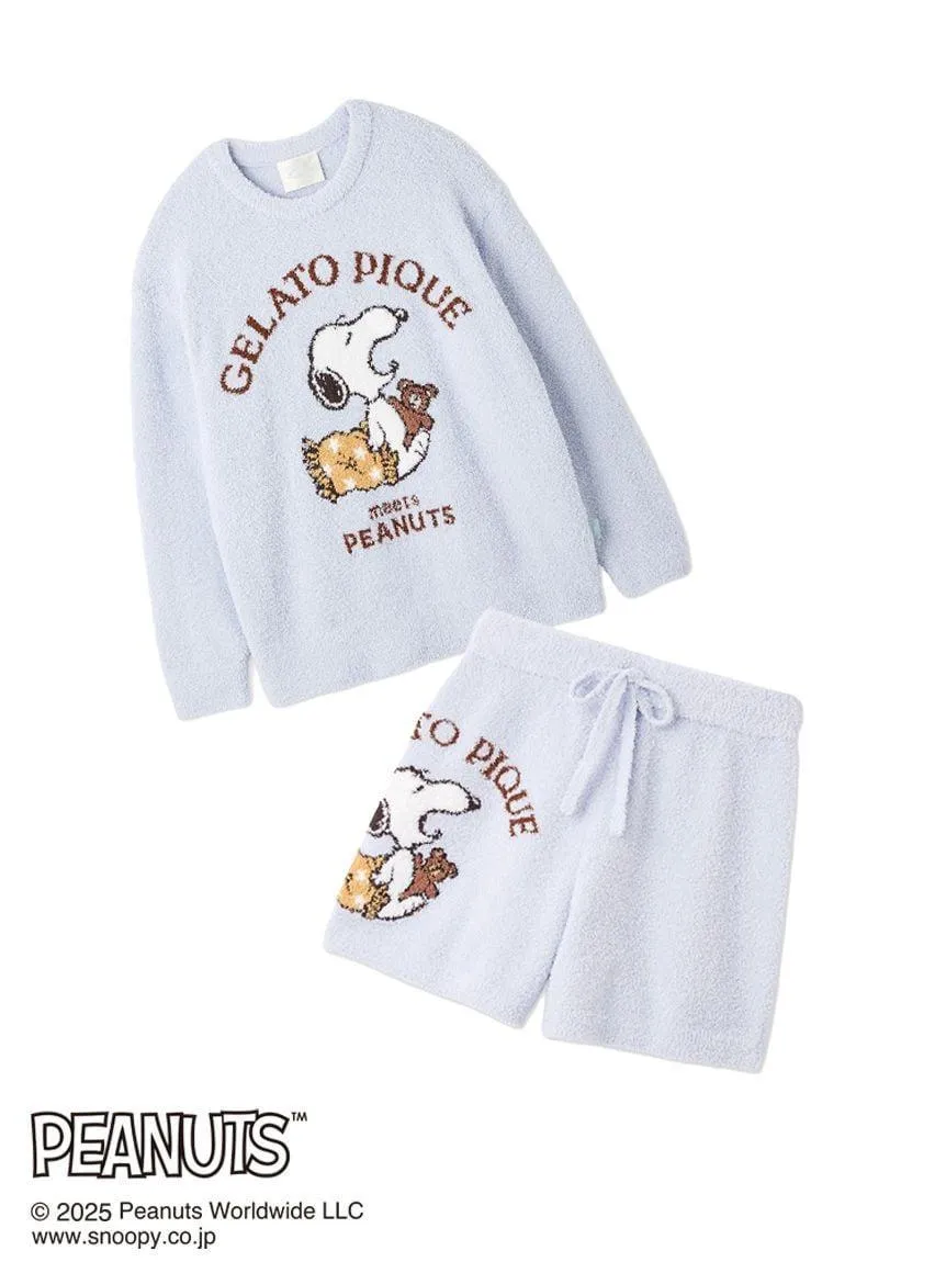 [A pullover and shorts set featuring original PEANUTS artwork exclusive to gelato pique, depicting cute moments before bedtime in a pop style]