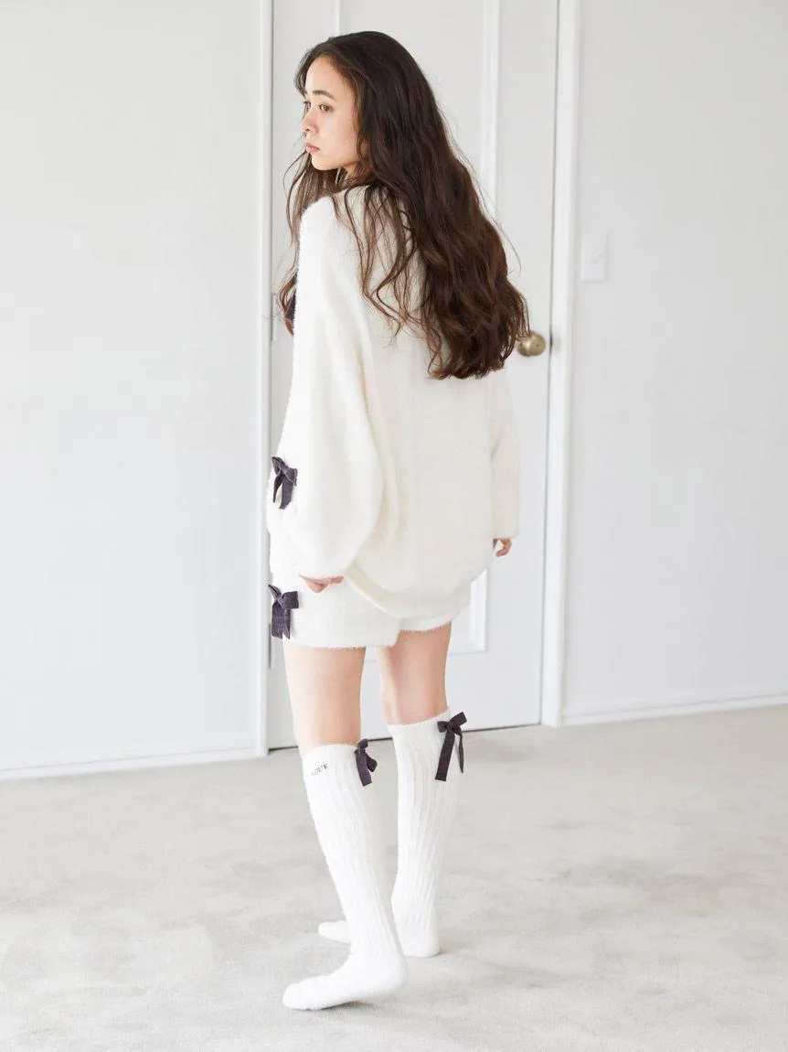 These shorts have a catchy presence, with ribbons, a trendy motif, on both hems. The long-haired knit material gives off a warm atmosphere, and the brand logo is embroidered on the waist as a single accent. Available in two colors: off-white and dark gray. Designed in monotone colors that go well with the Halloween season. Recommended for coordinating with pullovers and socks from the same series, or combining with accessories as a gift.