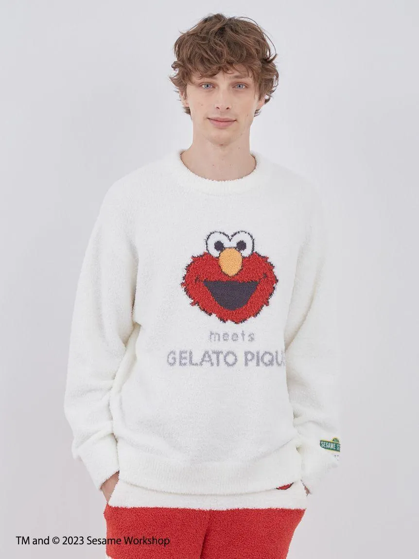 High-quality jacquard knit pullover featuring Elmo's cheerful face.